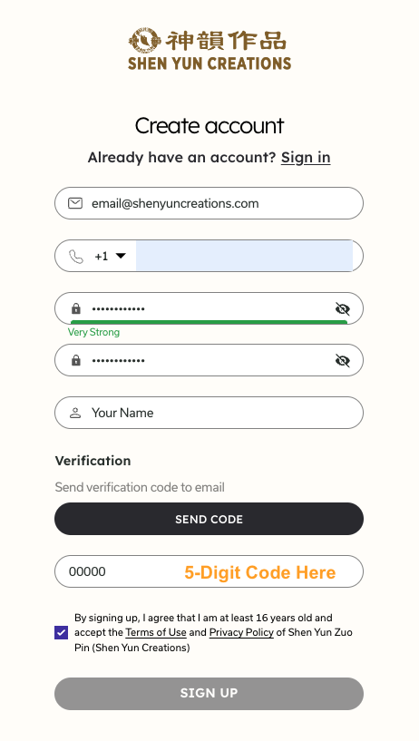 - Visit the Sign-Up Page: Head over to https://www.shenyuncreations.com/signup.